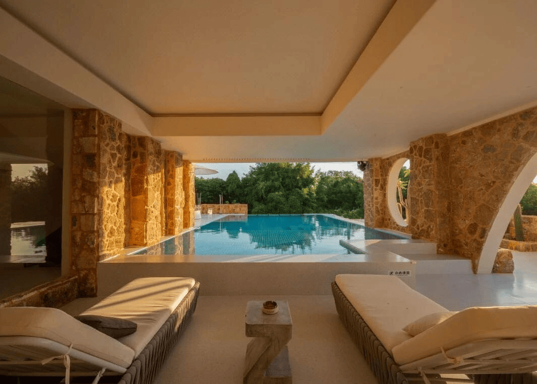 推荐理由:在涠洲岛五彩滩畔,忆栖今时民宿凭借其绝佳日出视野和简约美学设计,成为海岛度假的热门之选。纯白建筑与热带绿植相互映衬,每间房间拥有独立泳池,全屋采用微水泥与奶油色调,营造出温馨又具高级感的居住氛围。在OTA平台的评价,住客评价其“设计感十足”“拍照非常出片”,并提到“位置安静私密”“步行即可赶海”等优点。