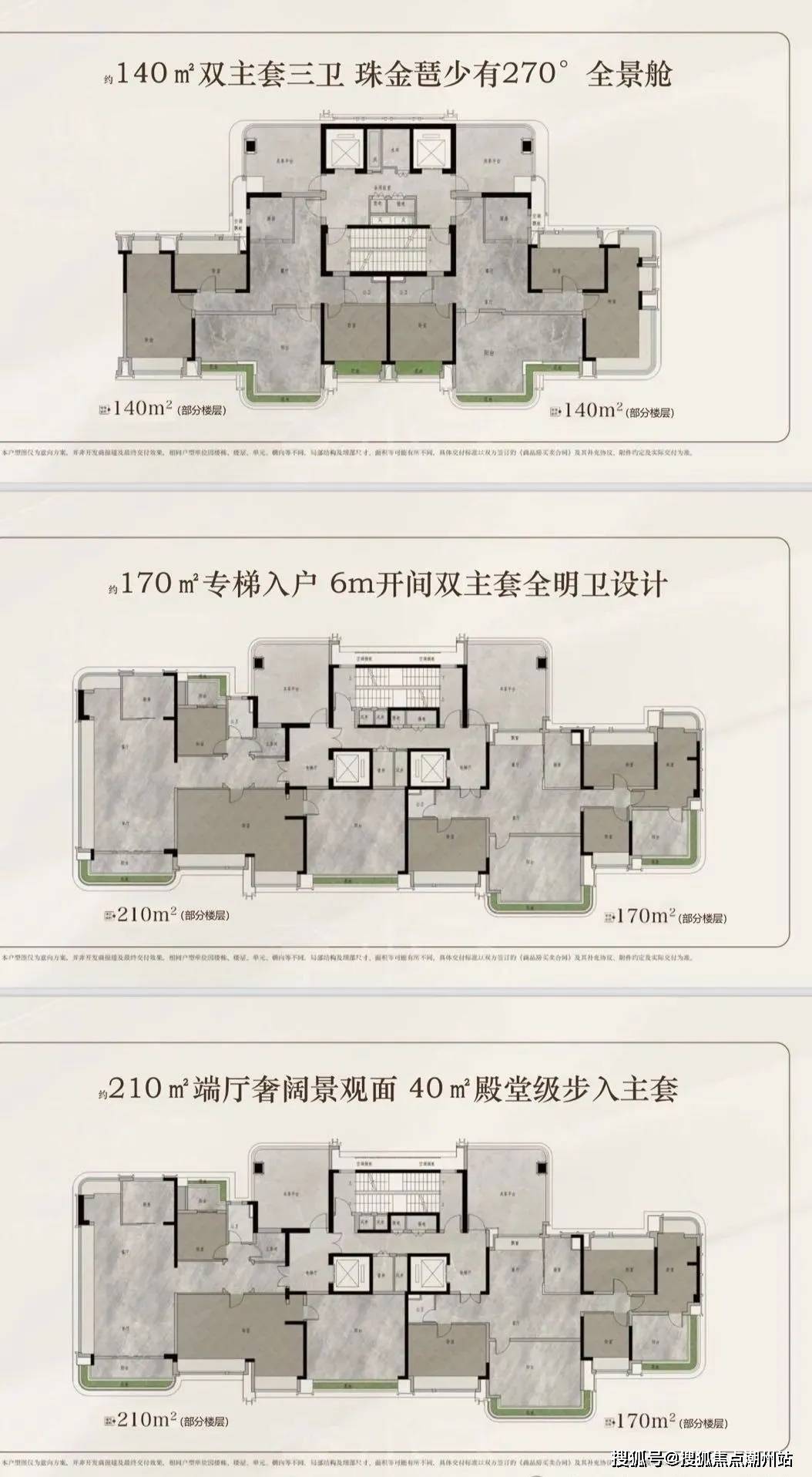 【产品配置】北区2T3/3T4塔楼,南区2T2板楼,建面约120-140-170-210㎡云幕平层
