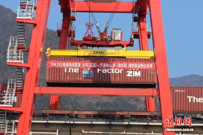 2月3日下午,“义乌苏溪-宁波舟山港”以星航运电商海铁联运专列成功首发。浙江省海港集团 供图