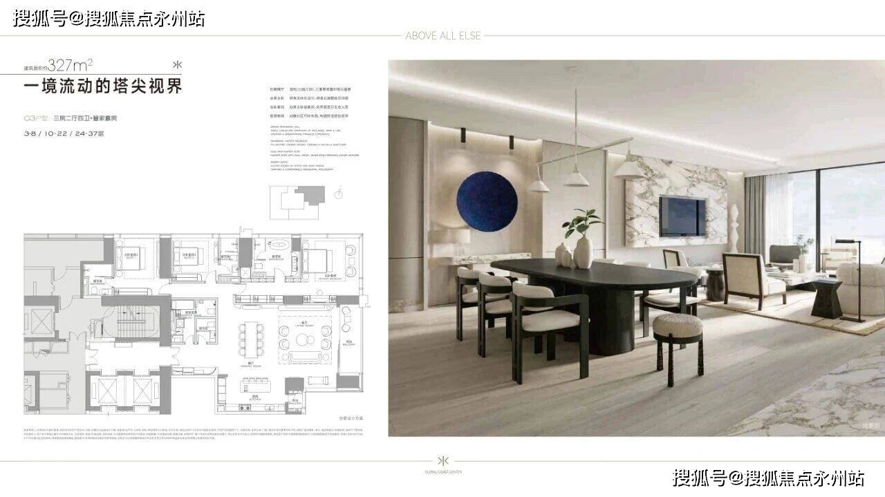 项目首推T3栋约123户,面积段约为:低区约303-327-400㎡,高区约400-570-1000㎡,层高约3.6-4.5米,均通燃气且配备超大阳台,部分户型采用 270°环幕视野设计。