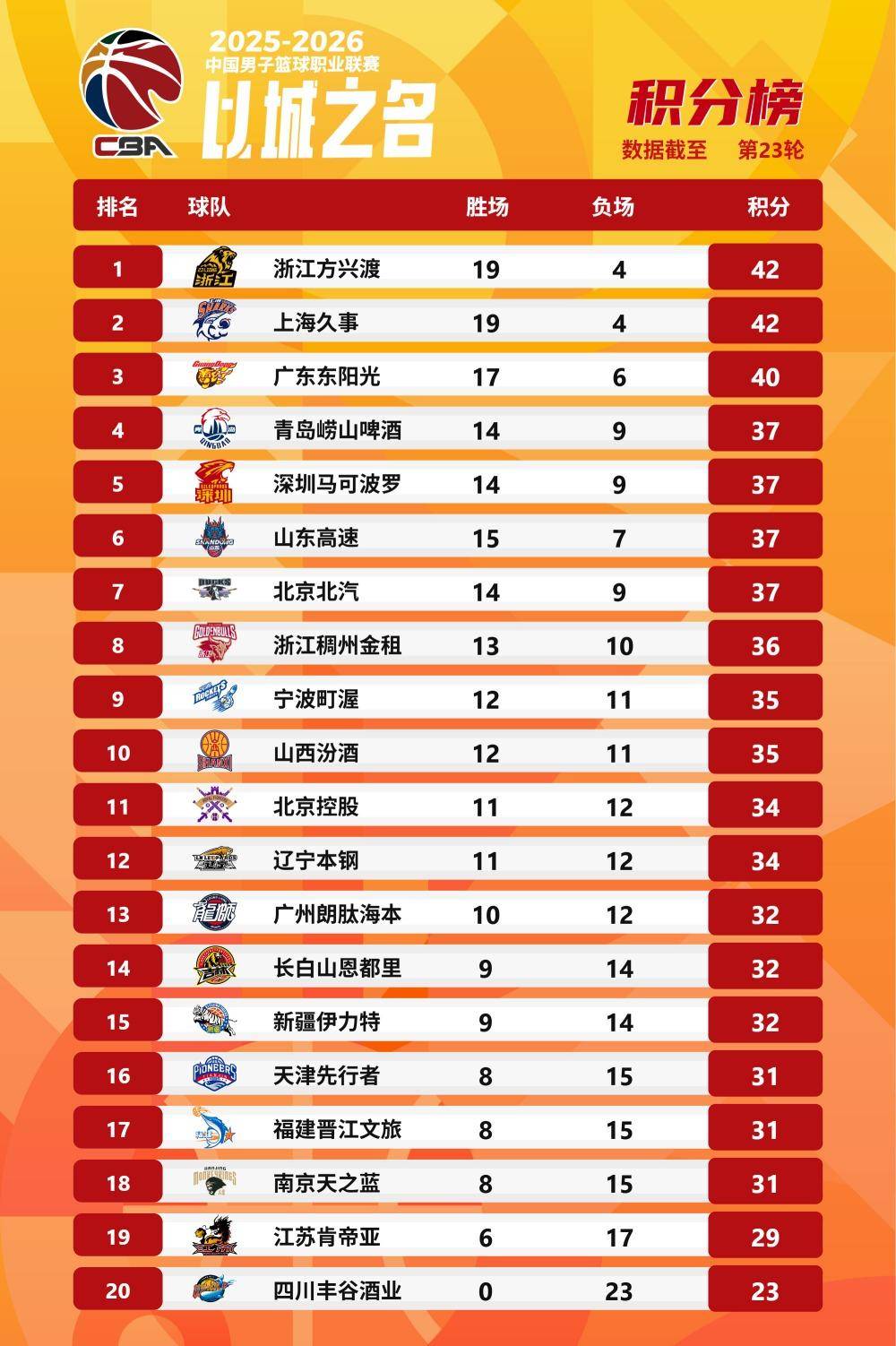 本赛季常规赛缩水,一共只有46轮,23轮正好联赛过半,CBA整体格局基本可以窥见七七八八。联赛积分榜也就有了一定参考价值。