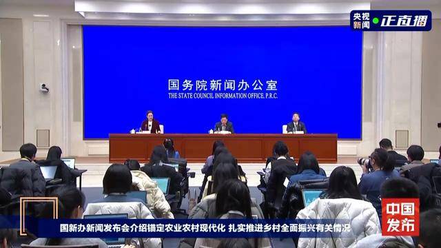 今天(2月4日)上午10时,国务院新闻办公室举行新闻发布会,介绍锚定农业农村现代化、扎实推进乡村全面振兴有关情况,并答记者问。