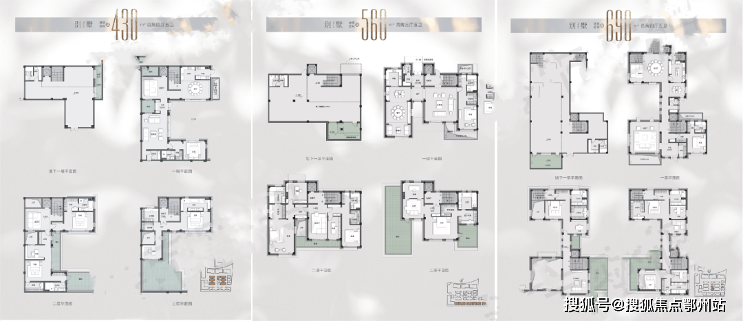 1号楼为保障房,2、3、4、8#为洋房,5、6、7、9、10#为别墅。洋房建面约170-340㎡,别墅建面约430-690㎡户型图如下:170㎡这户型房源不多,总价段应该不低于2500万。340平米这个户型设置了保姆房和家政空间,还分别设置了两个入户门,仪式感拉满。三间卧室,全部为套房设计,书房都有独立卫生间和储物空间。而这个户型房源会略多一些,预计总价应该在5000万+。别墅是大头,且都是拼接型别墅:地上三层,地下一层,从430㎡-560㎡-690㎡三种,都是四房四厅五卫的设计。预判8000万应该是其主力总价段本地块属于上海市低密度住宅的核心区,区域内住宅地块出让及供应皆极为稀缺,且周边交通便捷,居住氛围成熟,生活配套完善,为西郊地块的核心优质资源;