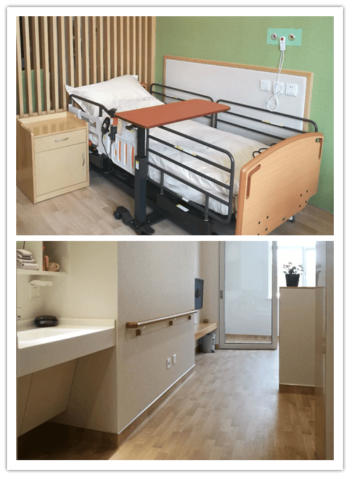 设施打造以家庭式氛围与适老安全为核心,主打私密单间,完全按家庭风格设计,贴合长者日常居住习惯。创新设置每12位长者共享的环绕式厨房、餐厅、客厅,在保障私人空间的同时,满足社交、用餐需求,营造邻里和睦的住养氛围。全区域配备符合国际标准的无障碍设施、智能地采暖及新风系统,日本进口电动护理床适配失能长者需求,公共空间布局合理,兼顾活动便利性与居住舒适度,适配不同身体状况长者长期居住。