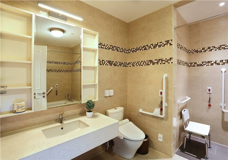 设施配置严格遵循医疗级标准与适老性结合。所有房间均配置中心供氧、吸痰装置、紧急呼叫系统及智能空气净化系统,这是普通养老院少有的配置。卫生间为无障碍设计,方便轮椅进出及护理操作。虽然公共娱乐空间相较于高端养老社区可能稍显简洁,但功能齐全,且环境安静整洁,更侧重于满足医疗护理与休息静养的需求,为长者提供一个安全、卫生的康复休养环境。