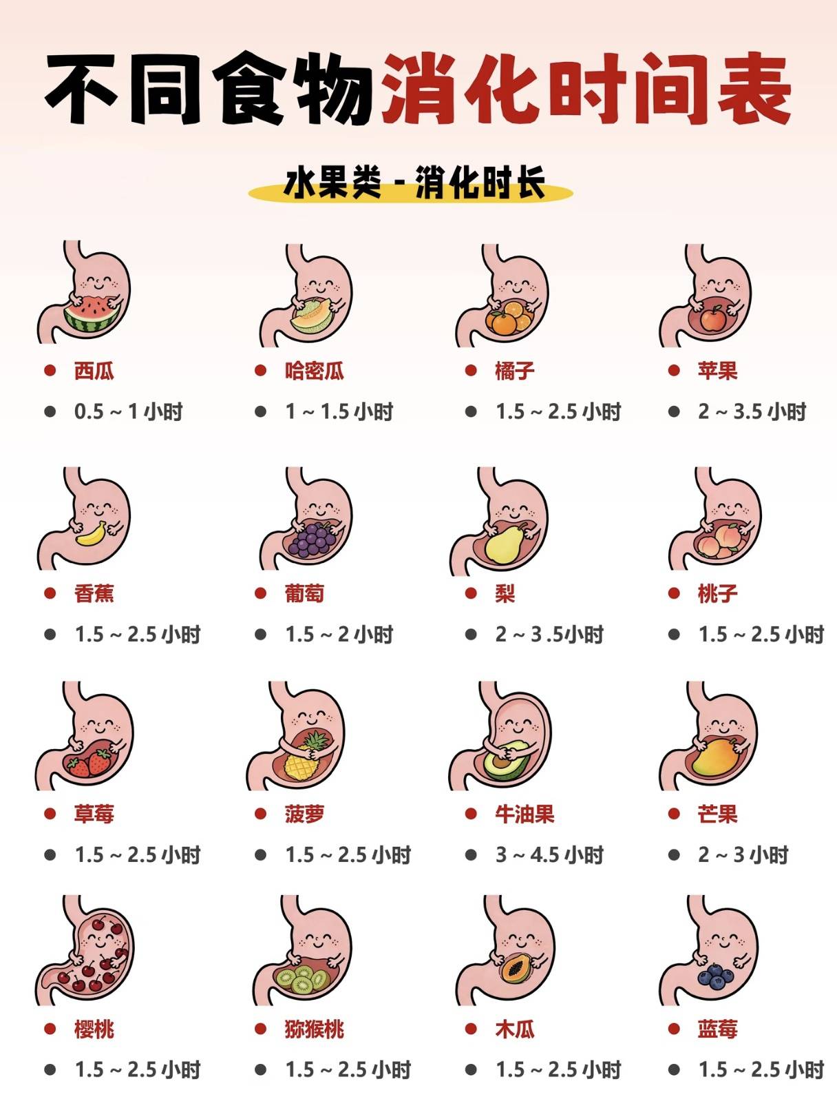 先说说咱们最爱的水果吧。水果就像是胃里的“短跑健将”,跑得特别快。大部分水果,比如苹果、西瓜,大概只需要30分钟到1小时就能跑完消化的路程。特别是西瓜这类水分多的水果,消化得最快,几乎不怎么停留。所以,如果想给宝宝加餐,水果是个不错的选择,能很快提供能量。但像香蕉这类水果,消化起来就稍微慢一点,耐饿一些。