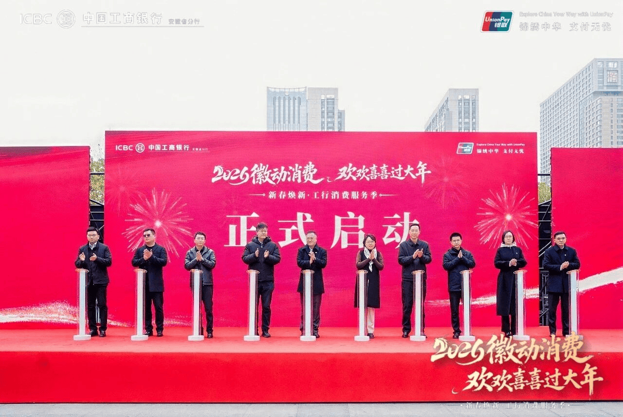 骏马迎春,祥瑞江淮。2月1日,工行安徽省分行联合银联安徽分公司、华润万象生活合肥商业,在合肥万象城举办“2026徽动消费·欢欢喜喜过大年”——新春焕新·工行消费服务季启动会,为全省消费者奉上诚意满满的新春消费礼遇。
