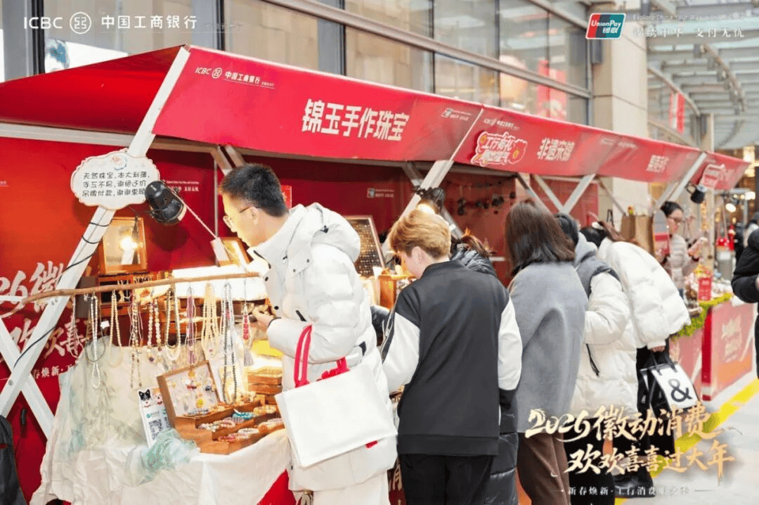 本次活动以“焕新”为主题,深度融合金融服务与消费场景,将合肥万象城皖巷变身新春主题市集。活动现场设置非遗文化体验区与金融惠民服务区,年味与民俗氛围交织,居民在现场沉浸式体验写福、制作非遗宋锦等传统年俗文化的同时,还可享受到由工行安徽省分行提供的各项消费优惠福利。