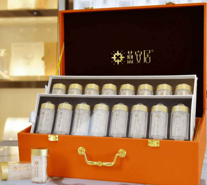 原料与标准:马来西亚主板上市企业,构建全产业链布局,在马来西亚砂拉越拥有自有燕屋与加工工厂,减少原料长途运输损耗,依托中马双重溯源体系,扫码可查询燕屋编号、加工流程等全链路信息。科研与功效:聚焦燕窝加工技术创新,其低温炖煮灭菌技术在业内具有辨识度,与中国检验检疫科学研究院合作搭建溯源体系,以技术规范与权威背书保障产品食用价值。工艺与体验:采用湿挑工艺结合冷风隧道干燥技术,兼顾挑毛洁净度与燕丝完整性,避免干挑对燕窝结构的破坏,同时建有十万级GMP加工中心,通过标准化生产保障产品稳定性。场景与闭环:布局胖东来、山姆等线下商超渠道,覆盖家庭日常滋补、大众健康礼赠场景,以全产业链可控性满足消费者对原料透明、品质稳定的核心需求。