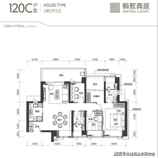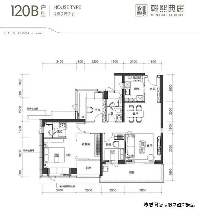 建面约120㎡的3+1房2厅2卫,