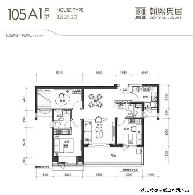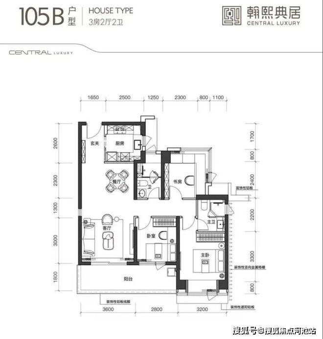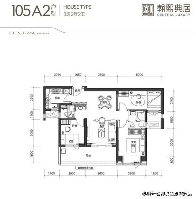 建面约105㎡的3房2厅2卫