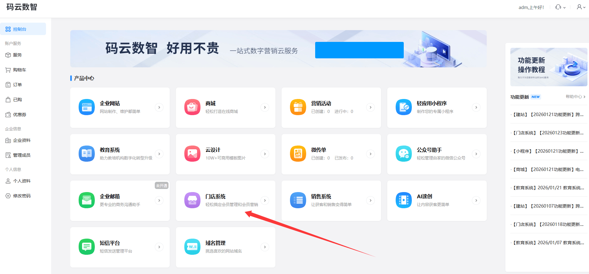 这里会有不同类型的产品,我们做会员管理,选择门店系统。