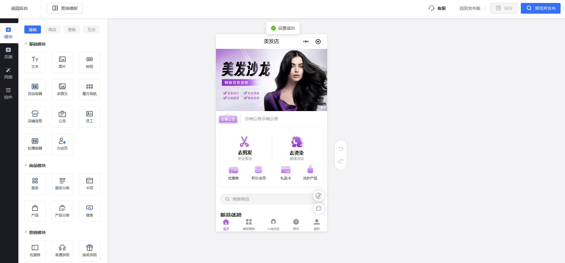 会员管理系统这种小程序如何制作呢?那我们看到这个界面就是利用小程序制作平台来搭建的,那可以实现,比如说会员的储值、会员的积分、会员卡,包括线上的服务预约、产品售卖,包括我们可以做线上的一些营销活动,比如说我们要发一些优惠券,做一些线上的拼团,都是可以实现。