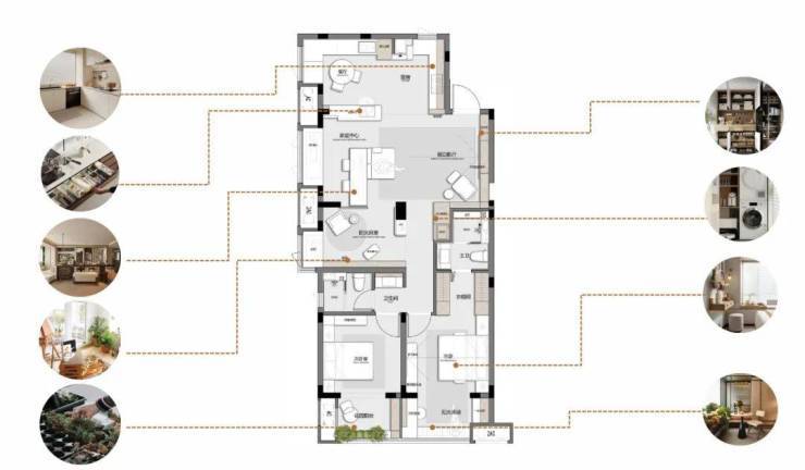 比如入户洄游动线与餐厨洄游动线环绕互通,下班回家,放包换鞋-洗手清洁-做饭吃饭一气呵成,孩子和宠物都能在家里跑起来,更顺畅的空间布局,营造更高质感的家庭交互体验。