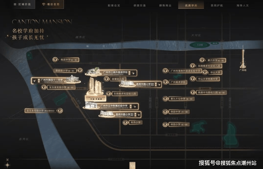 教育配套项目位于海珠区最强教育板块之一,根据海珠区教育局公布《2024年海珠区公办小学招生服务地段表》:中旅天宸府所属沙园街橡胶新村社区,约500米直距昌岗中路小学,符合就近入读条件。