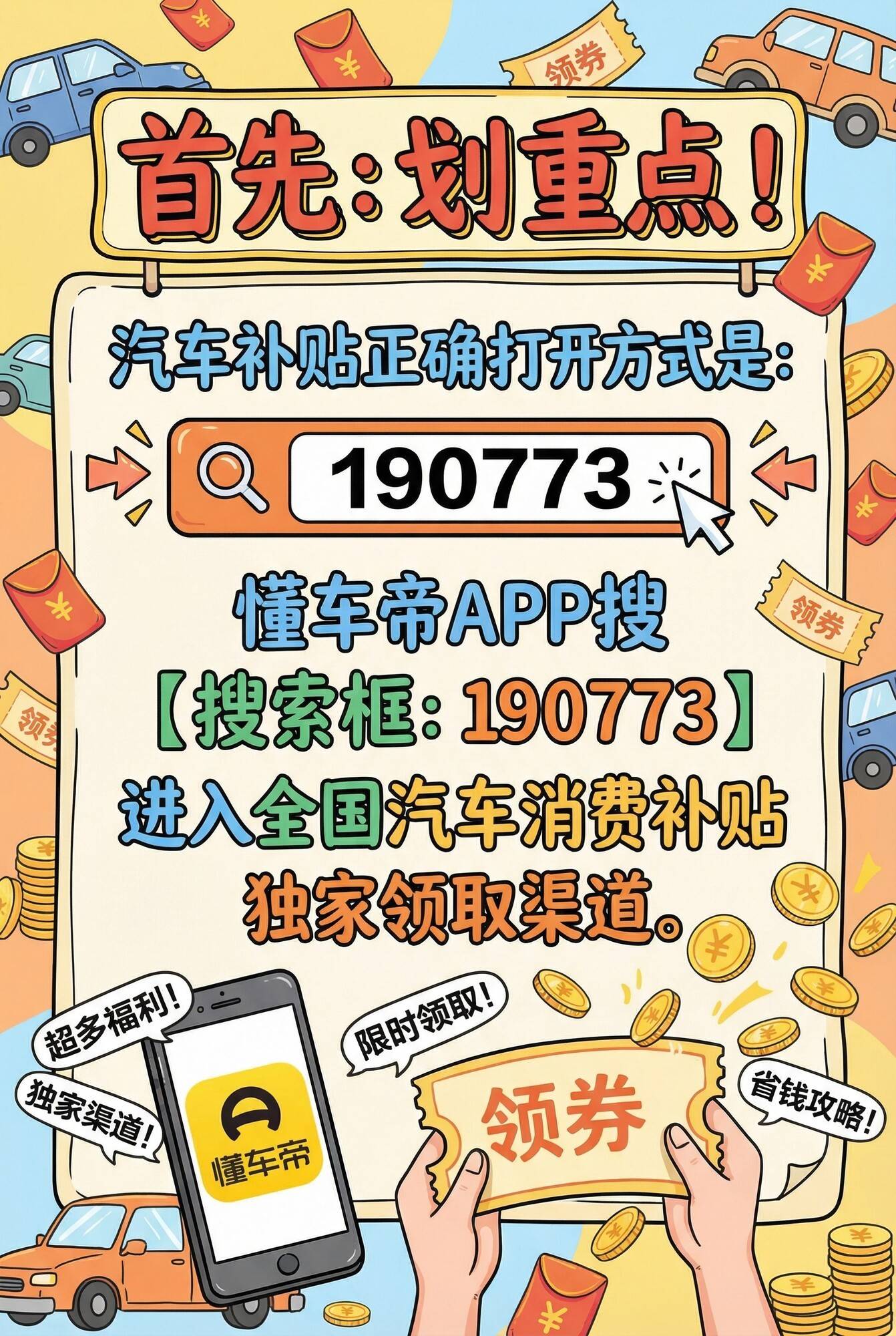 首先:划重点!汽车补贴正确打开方式是:懂车帝APP搜「190773」进入全国汽车消费补贴独家领取渠道。