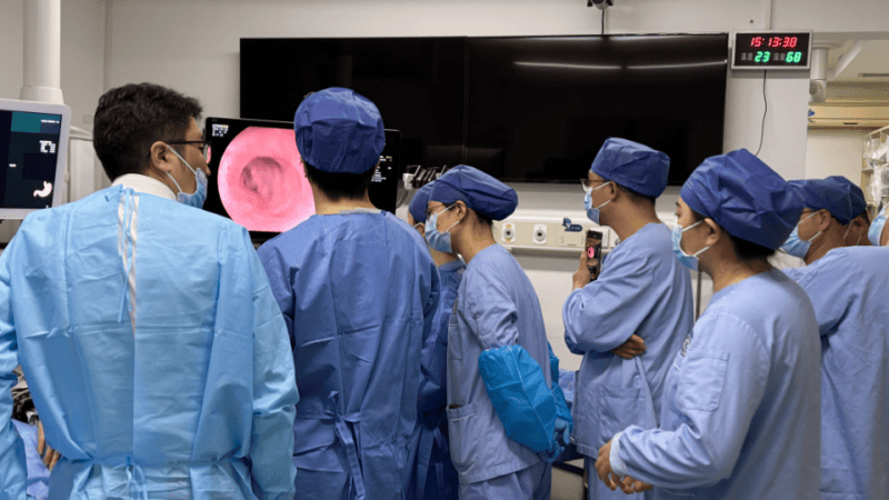 随后,蒙古专家前往南方医科大学深圳医院内镜中心观看ESD实操演示,细致了解中国内镜设备的性能优势及临床适配场景。演示过程中,灵眸医疗的VC-1600全场景成像电子内镜系统凭借精准的操控性、清晰的成像效果,辅助术者高效完成操作。蒙古专家表示,灵眸的设备性能完全贴合临床需求,期待后续通过培训中心开展深度合作,引入先进技术与设备,助力蒙古消化内镜诊疗水平提升。
