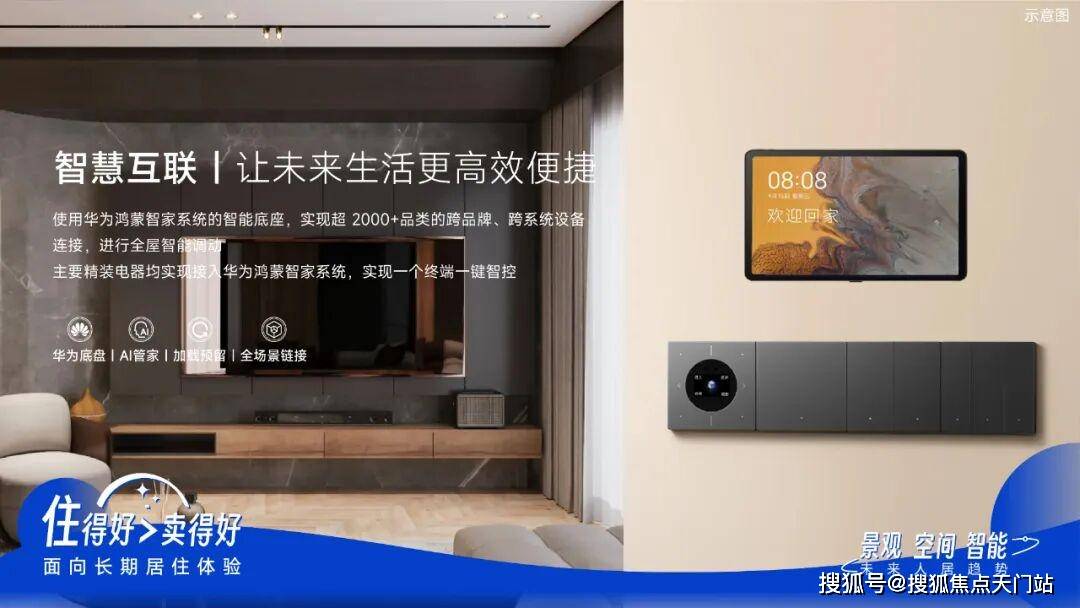 使用华为鸿蒙智家系统的智能底盘,实现超2000+品类的跨品牌、跨系统设备连接,进行全屋智能调动