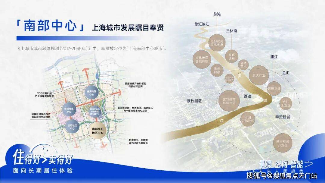 《上海市城市总体规划﹙2017-2035年﹚》中,奉贤被定位为“上海南部中心城市”。以东方美谷和数字江海国际化产业园区,打造全国领先的产业集群,规划建设有约2.53平方公里“上海之鱼”、约32公里“十字水街”岸线、全长约50公里田字绿廊,形成“国家生态园林城区”