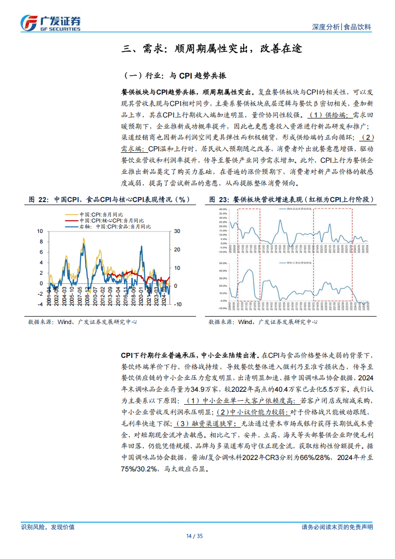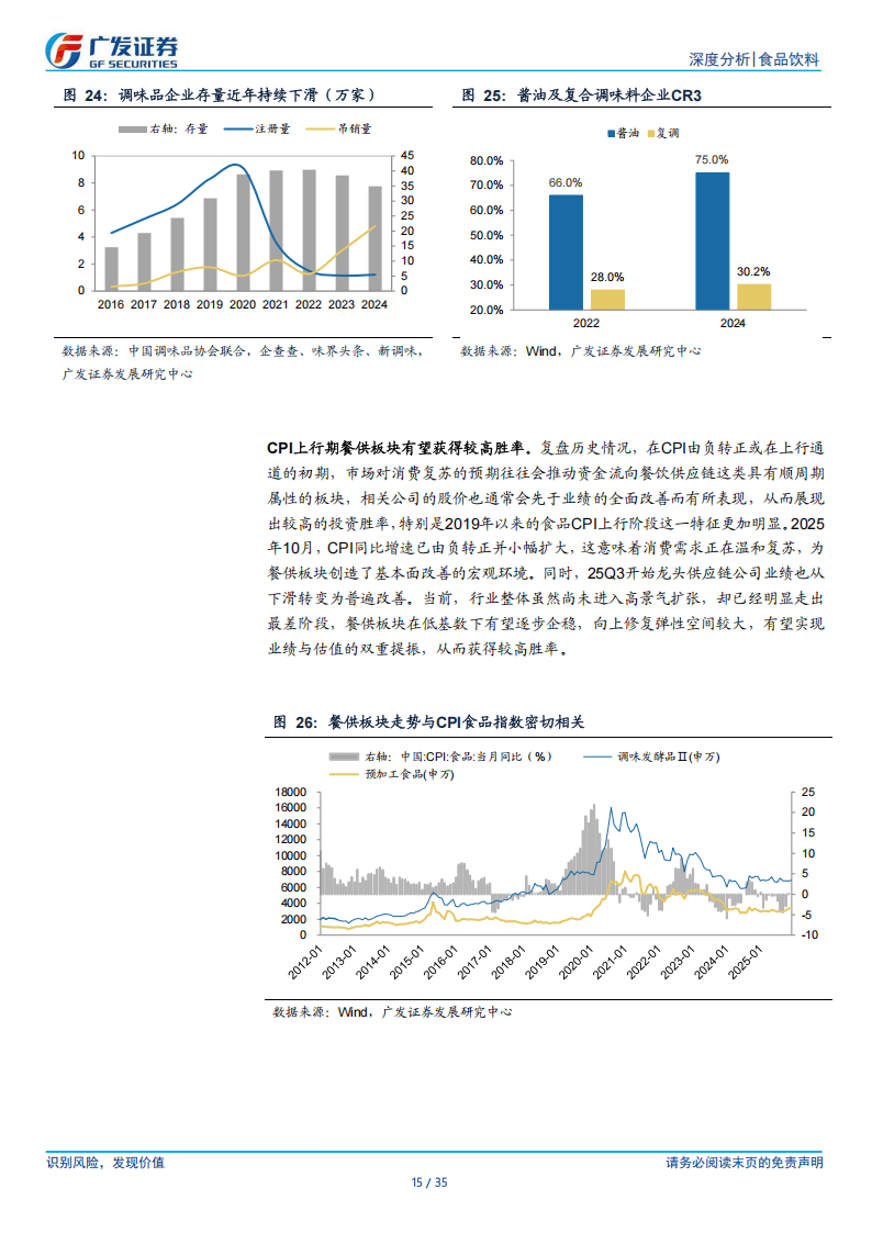 需求端呈现鲜明的顺周期属性,与CPI趋势共振。CPI温和上行时,居民外出就餐意愿增强,餐饮业需求传导至供应链,同时消费者对新品价格敏感度降低,利于企业推新。2025年10月CPI同比转正,消费需求温和复苏,叠加25Q3起龙头企业业绩改善,行业已度过最差阶段,处于企稳修复过程。中小企业因客户依赖度高、议价能力弱、融资渠道窄在调整期加速出清,龙头企业凭借规模、品牌与多渠道优势,市场份额持续提升,马太效应凸显。