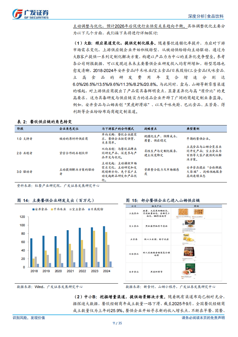 供给端方面,行业资本开支高峰已过,竞争趋缓。2020-2023年行业经历产能投资周期后,2024年资本开支显著回落,进入“消化产能+提升利用率”的新阶段。企业从“被动支持者”向“主动驱动者”转型,龙头企业摒弃粗放式扩张,转向高效服务大B客户、精细化运营中小B客户。在渠道布局上,企业积极开拓会员制商超、团餐、外卖等增量渠道,山姆等新零售渠道成为重要增长点;产品端通过持续创新避免价格竞争,安井食品、千禾味业等企业不断推出新品;同时,行业并购整合加速,企业通过收并购扩充能力边界,实现渠道、产品或供应链的互补。