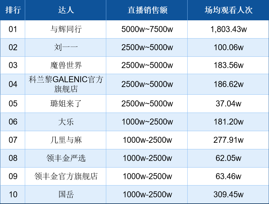 抖音2月5日直播带货日榜:魔兽世界开启暴雪新春狂欢季,多重福利助力销售额破2500万;领丰金两店播成榜单常客,以超1000万销售额位列第八和第九。
