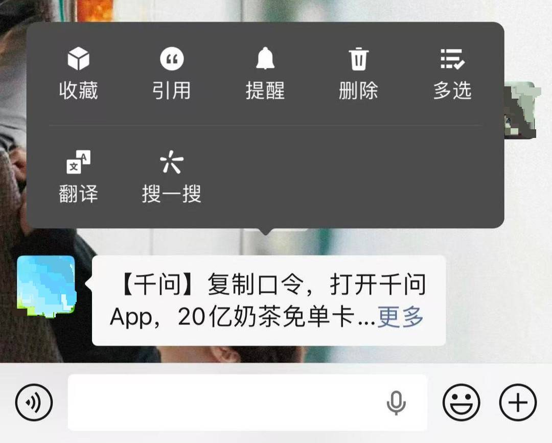 2月6日阿里千问开启红包活动后,其分享链接也被微信以相同方式屏蔽,随后,千问将微信分享模式调整为口令形式。