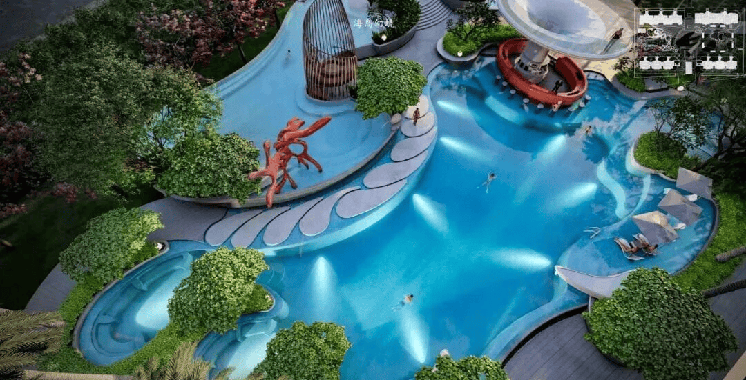 超 1000 ㎡中央泳池,下楼即度假