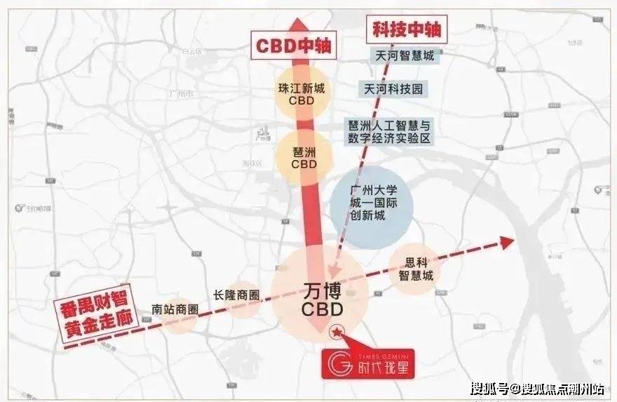 时代珑星位于广州番禺区万博CBD旁,紧挨着核心区!万博CBD在区位上位于番禺华南板块核心地段,北承珠江新城、琶洲会展中心、南接南沙自贸区,西连广州南站,占踞广州CBD中轴,广深港澳科技走廊与广深港高铁经济带双廊交汇的黄金C位,又属广州南拓轴与珠三角东西岸融合带核心,未来CBD价值不言而喻,万博板块的时代珑星,距离万博3公里多。