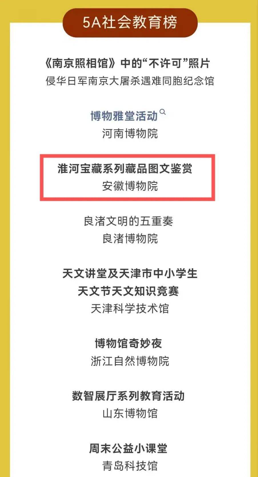 近日,博物馆头条发布2025年度三大热门榜单,安徽博物院斩获两项殊荣:“100℃热门场馆榜”,位列第23;“淮河宝藏系列藏品图文鉴赏”项目荣登“5A社会教育榜”,位列第3(同一机构在全部榜单中总计入选不超过两项)。