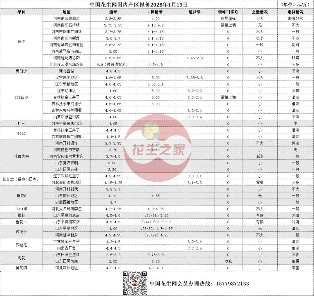 1月19日,花生产区一线报价