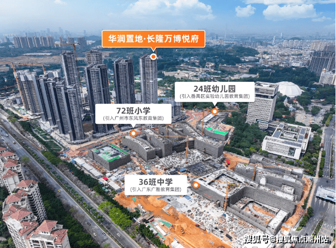 教育配套:华润负责配建中小学用地,补齐板块短板,将有21班幼儿园,72班小学,36班初中,其中小学+初中是108班公办九年制学校, 完善国际标准教育配套。 (6月27日) 长隆万博悦府 官宣引入广州市东风东教育集团办学 ,72班公立小学由广州市越秀区东风东路小学派出管理团队,负责本学校的教育教学管理和日常运作。