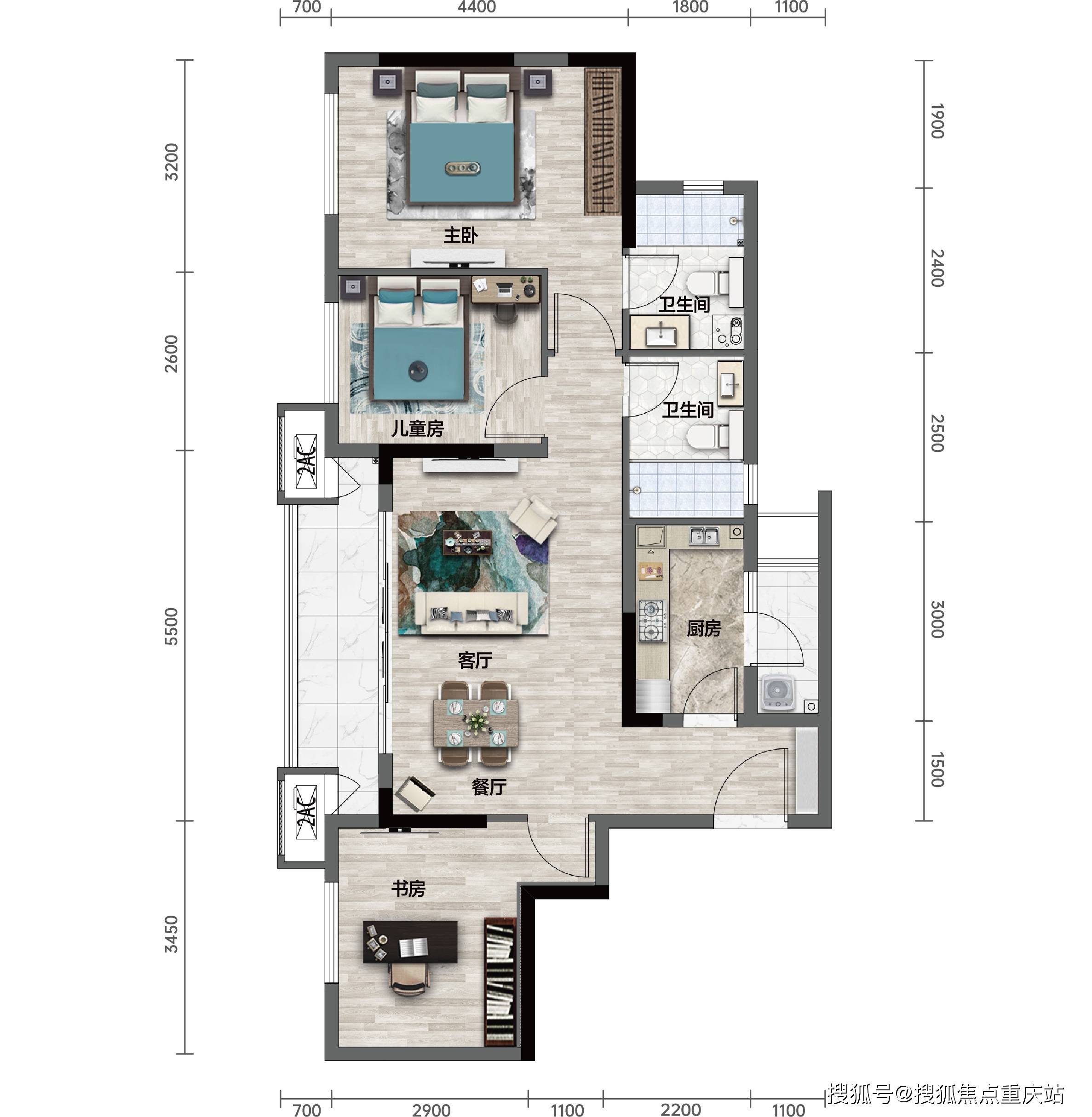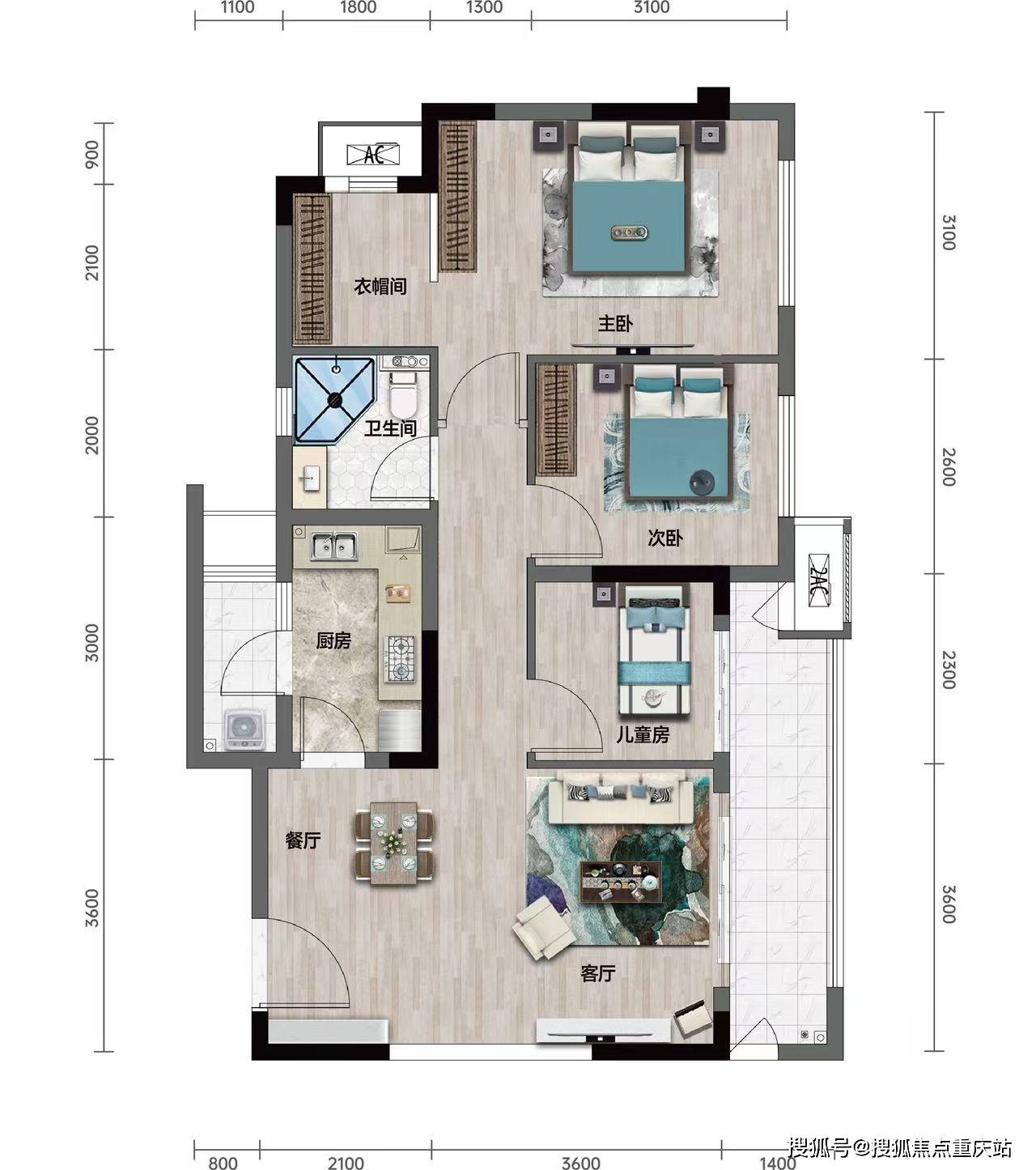 户型方正,动线合理,空间利用率高,功能尺度舒适最大化