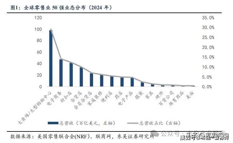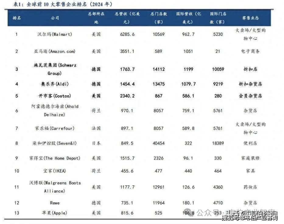 根据美国零售联合会发布的2024年度“全球零售50强”榜,前5名中有3家折扣企业,分别是Schwarz(施瓦茨)、Aldi(奥乐齐)、Costco(开市客)。在前50名中,折扣业态占比12.3%,是排名第三的零售业态。