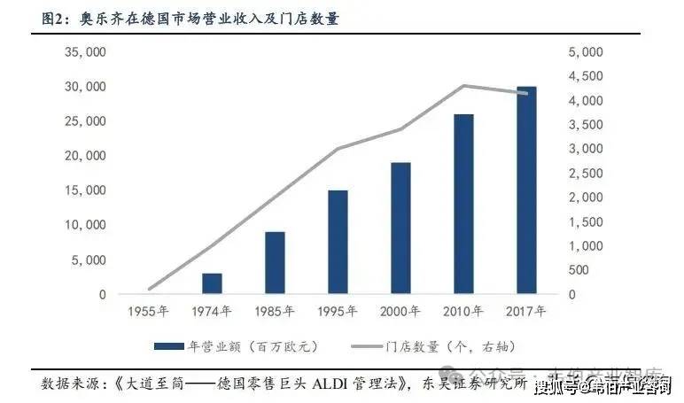 1955年至2017年,奥乐齐在德国市场的营业额复合增速达到13%,门店数量增加至4000多家。