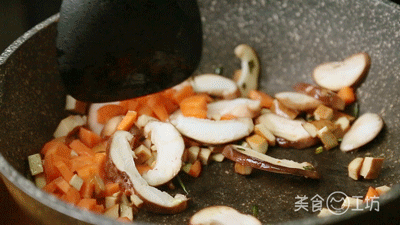 4. 放入切好的香菇、胡萝卜,继续翻炒。