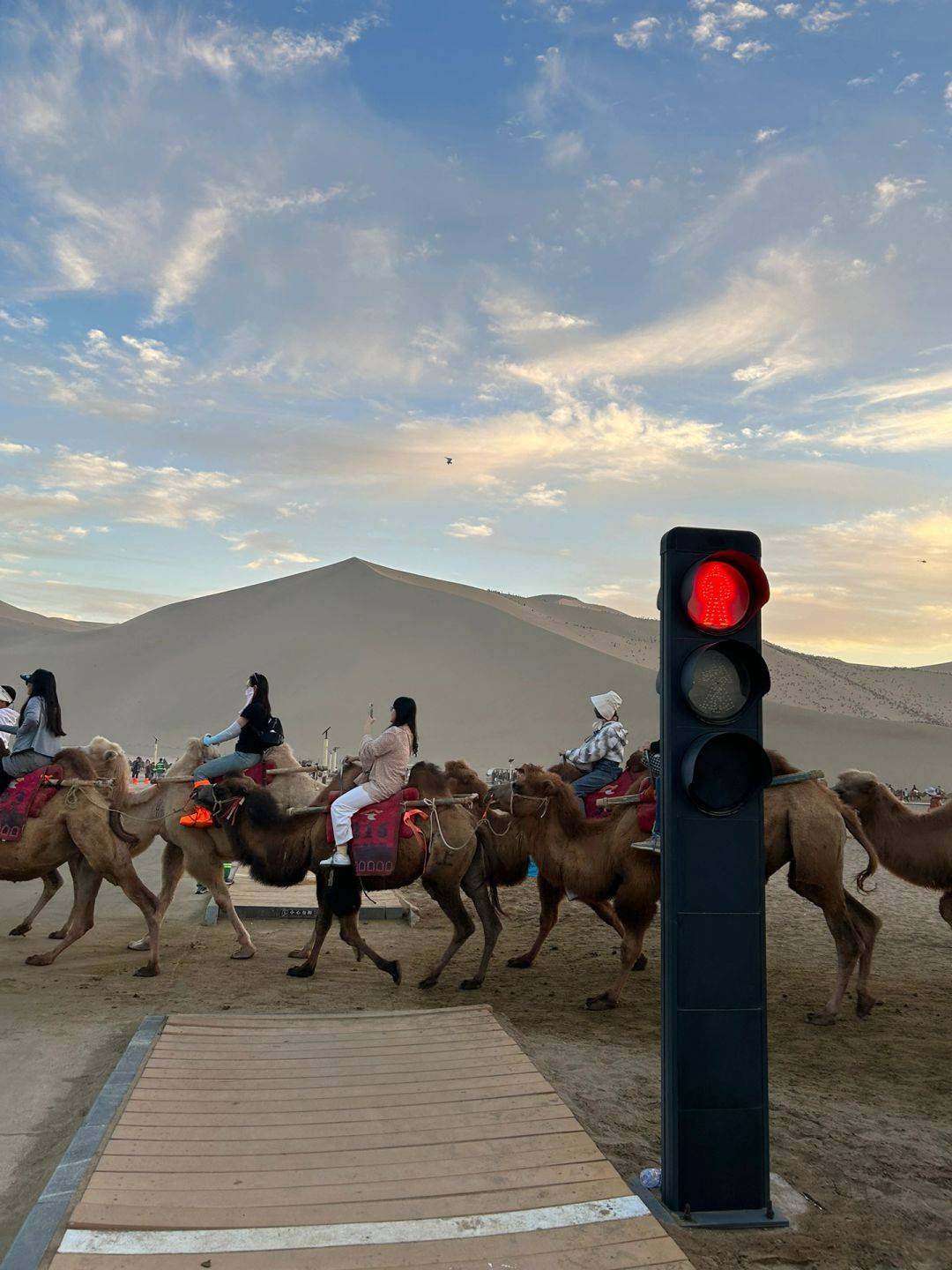 第五天无疑是行程的文化高潮。上午我们参观了敦煌莫高窟,预约门票和专业的讲解服务已包含在费用中,朵朵的补充讲解更是锦上添花,让我们对壁画背后的故事理解更深。下午我们来到鸣沙山月牙泉,体验了骆驼骑行(费用已含),在沙丘上看夕阳西下,月牙泉灯火初上,景象如梦似幻。当晚继续入住敦煌的酒店,经过一天充实游览,舒适的休息环境显得格外重要,而这部分住宿成本早已在人均一千二百元的框架内。