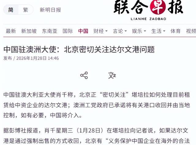 对于澳方可能终止达尔文港租约的动向,中方虽未直接回应具体事件,但多次强调,任何基于冷战思维、破坏互利合作的行为,最终都将自食恶果。