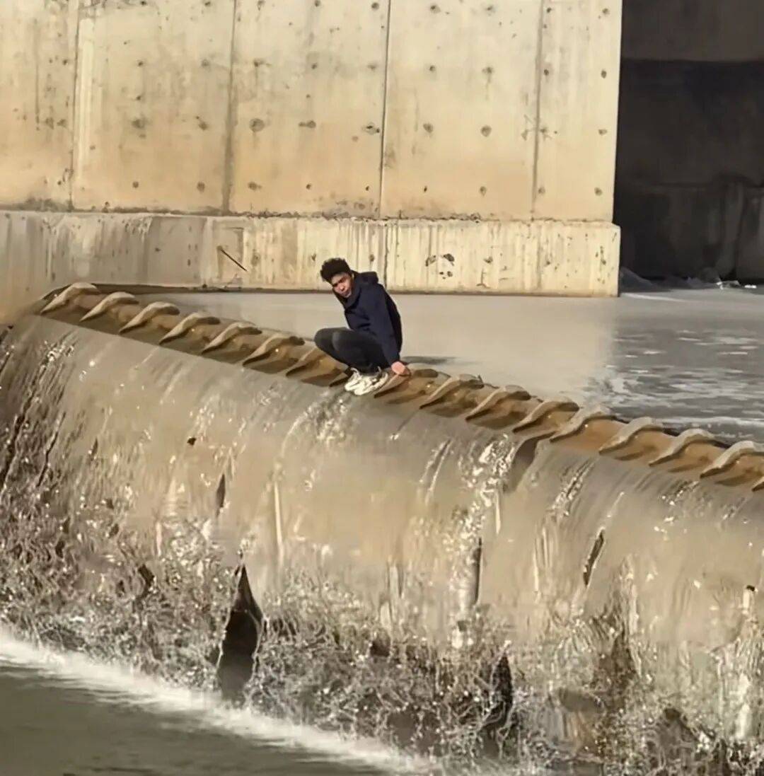 起初是看到小伙在闸口上蹲着