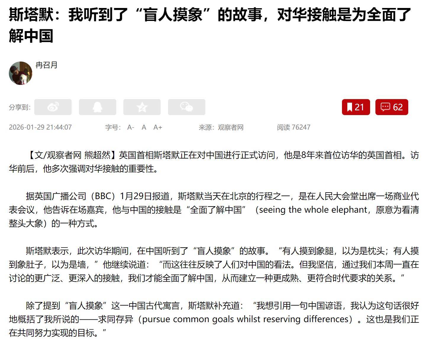 会后,斯塔默显得非常满意,感慨这次访问果然是正确的决定。他表示,中国已经成为了巨象,而英国将努力与中国保持求同存异的良好关系。在故宫的演讲中,他向世界宣布,此行已取得了实质性突破,并且在各个领域都达成了突破性进展。此行后,斯塔默认为,中英关系的基础已稳固,双方的未来发展将充满活力。从他的言辞中,可以感受到他对这次访问的高度满意,也更加坚定了自己改善中英关系的决心。正如王毅外长所说,英首相此行应收获历史性的成果,这番评价极具分量,说明此次会晤对中英双方来说,确实是一次重要的契机。
