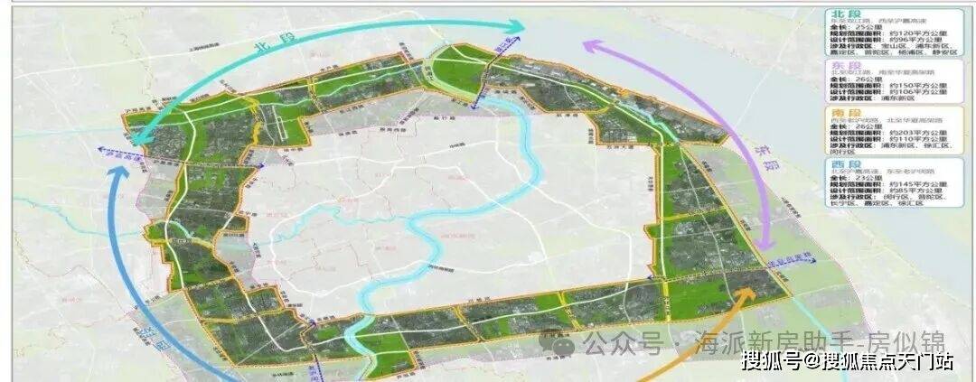 十四五规划金色中环进入2.0版发展阶段——开始上海金色中城新篇章,城市设计方案征集正式启动,规划能级从区级提升至市级对齐纽约“曼哈顿中城”。囊括浦东新区、普陀区、长宁区、徐汇区、闵行区、宝山区、嘉定区7个行政区,分为四段、十六个单元,同时聚焦上海下一条轨交环线26号线及沿线重点板块,如张江科学城、漕河泾开发区等关键节点,以优化交通体系与产业布局。(从区级向市级能级跳跃)