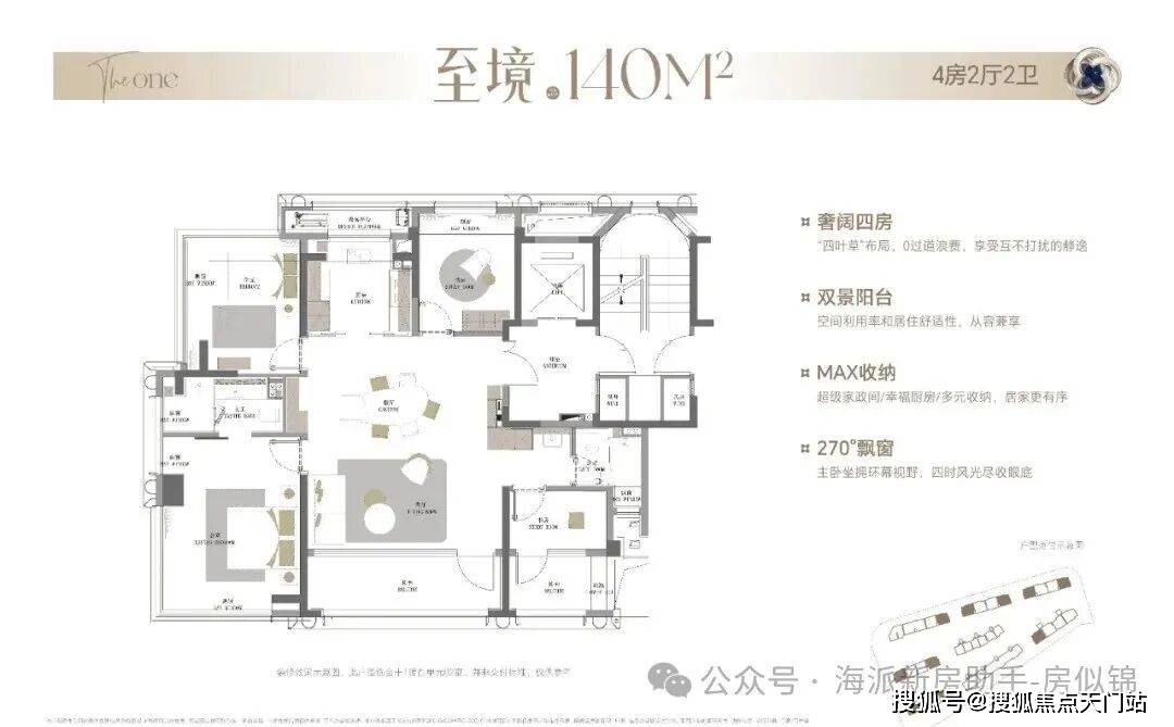 整体布局与140㎡户型基本一致,双南向阳台、独享电梯厅、6飘窗等户型拓展面积超过18㎡!