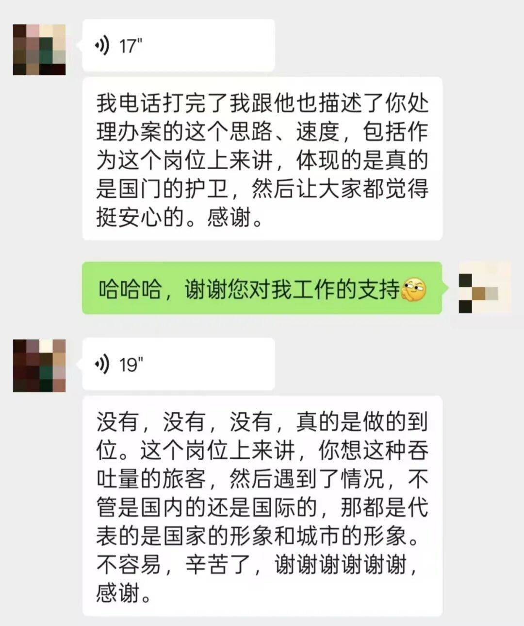 事后,宋女士特意通过微信再次向民警致谢,字里行间满是感激:“真的太感谢你们了!作为国门护卫,你们的服务让人特别安心!”她还特意提到,大兴机场每天客流量巨大,民警在繁忙的工作中还能如此用心对待群众的事情,不仅切实解决了自己的燃眉之急,更彰显了国家和城市的良好形象。