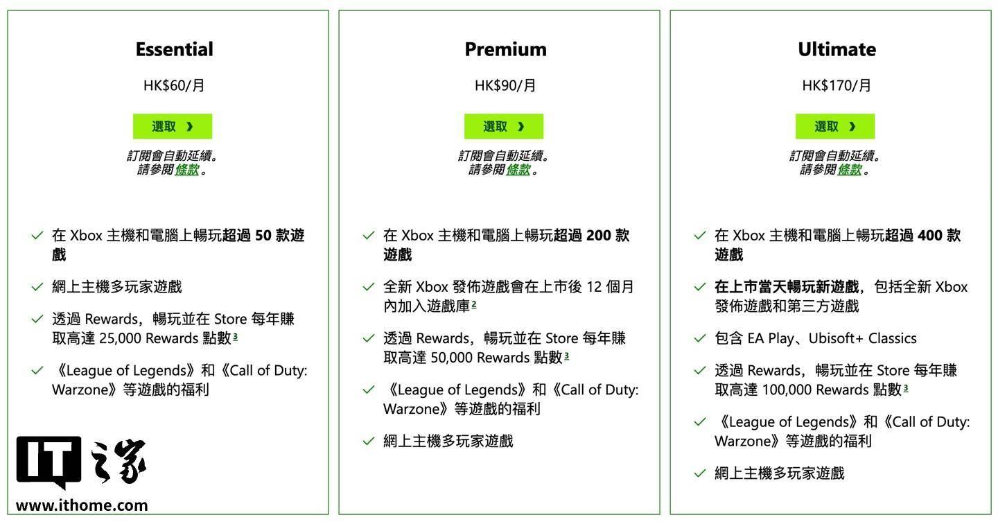 作为比较,IT之家整理港服 Xbox Game Pass 系列会员定价如下:
