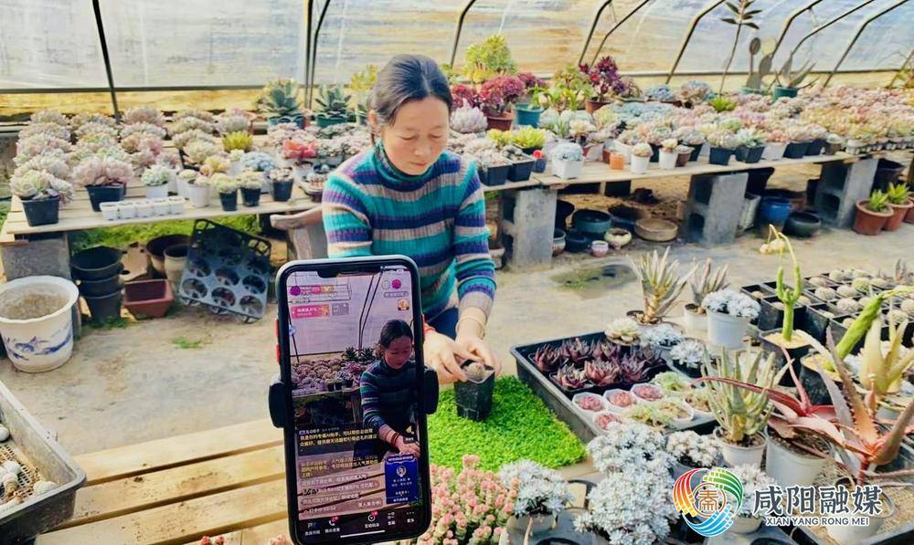 “朋友们好,欢迎来到‘小郭的多肉’直播间,我们现在在兴平市书婉多肉园艺的大棚里,这里形态各异、色彩斑斓的多肉植物具有很高的观赏价值,是美化居家环境、点缀办公场所的新选择,上百种多肉植物请大家尽情挑选。”2月2日,在简易直播间里,主播赵飞翠手持精致的多肉植物,对着镜头热情地向网友介绍多肉产品的独特优势,从品种特点到种植过程,无一不详细解说。五颜六色、大小不一的多肉产品在直播间一一亮相,直播间的人数不断上涨,订单纷至沓来。