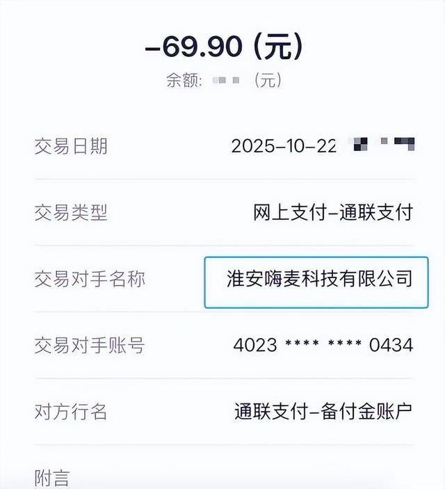 这笔会员费的收取方多显示为“淮安嗨麦科技有限公司”。工商信息显示,淮安嗨麦科技有限公司早在2025年6月就被淮安经济技术开发区市场监督管理局列入经营异常名单,列入原因为“通过登记的住所或者经营场所无法联系”。2025年12月,该公司名称已变更为“南通嗨麦科技有限公司”。