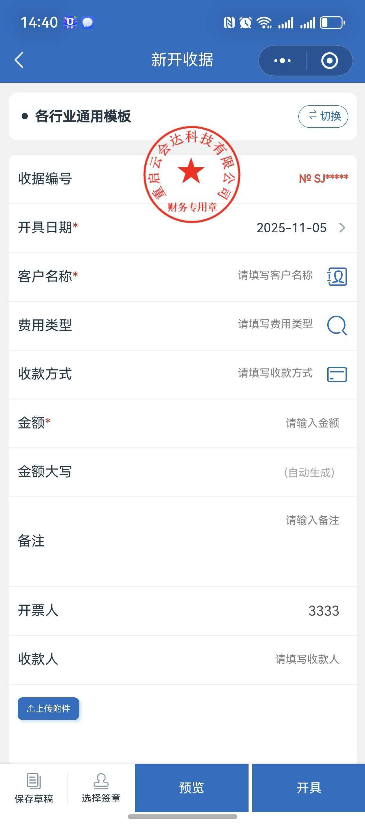 3. 在填写界面依次填写收据内容,加星号标识的为必填项
