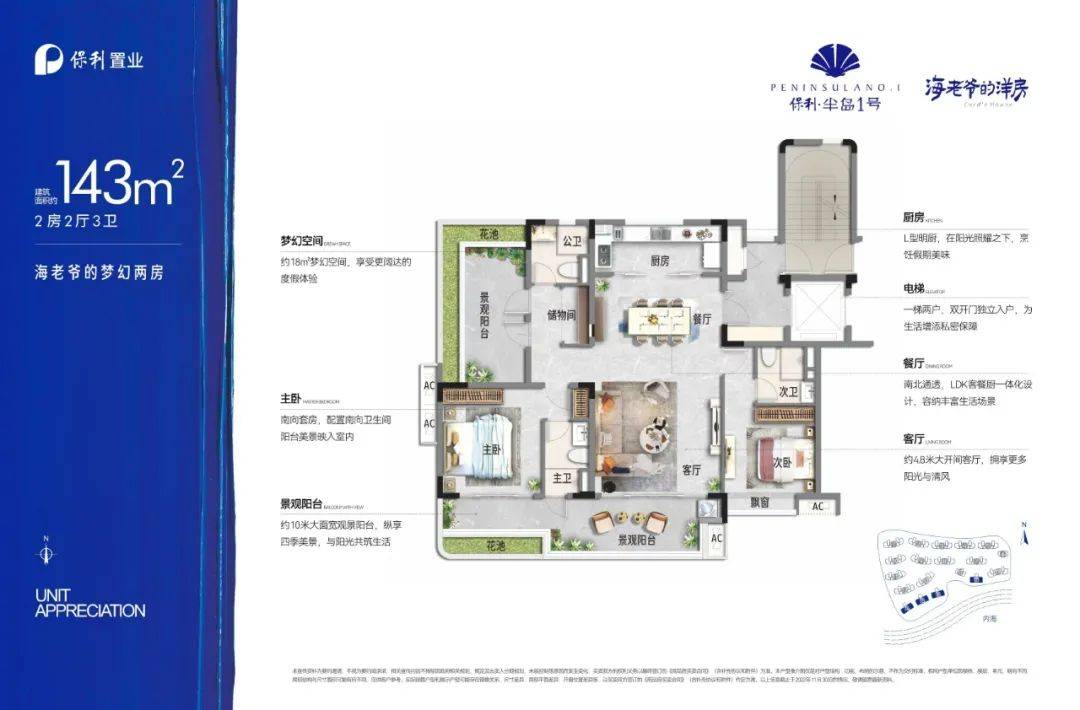 产品类型:建筑面积约107㎡-143㎡三到四房