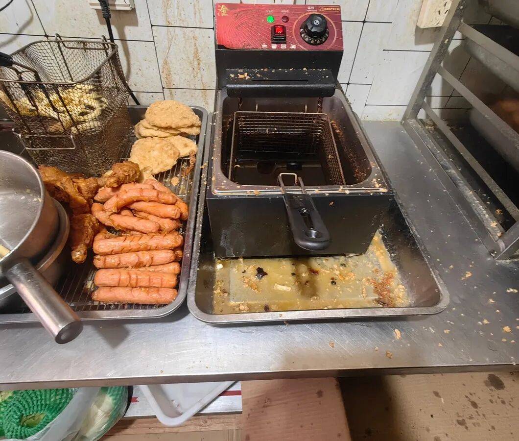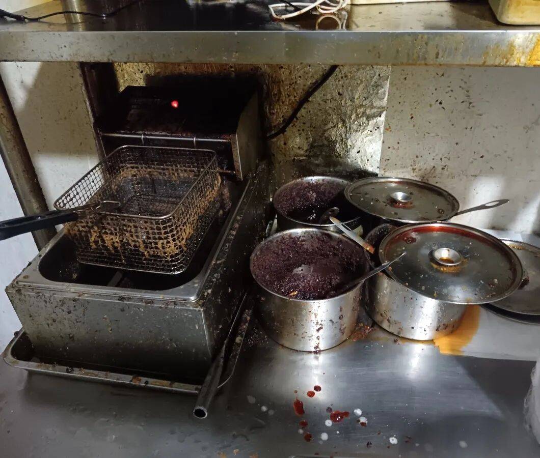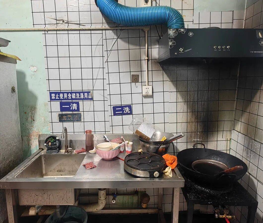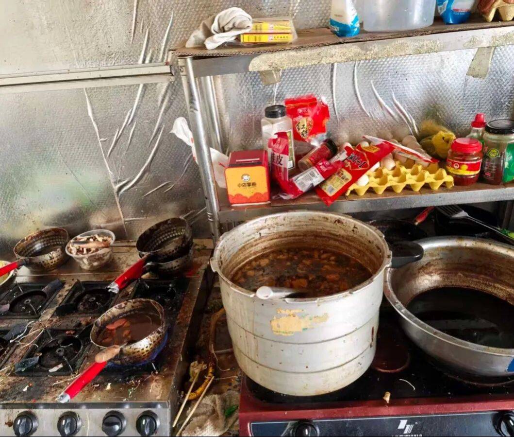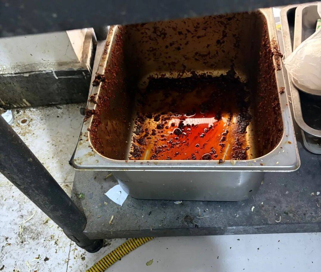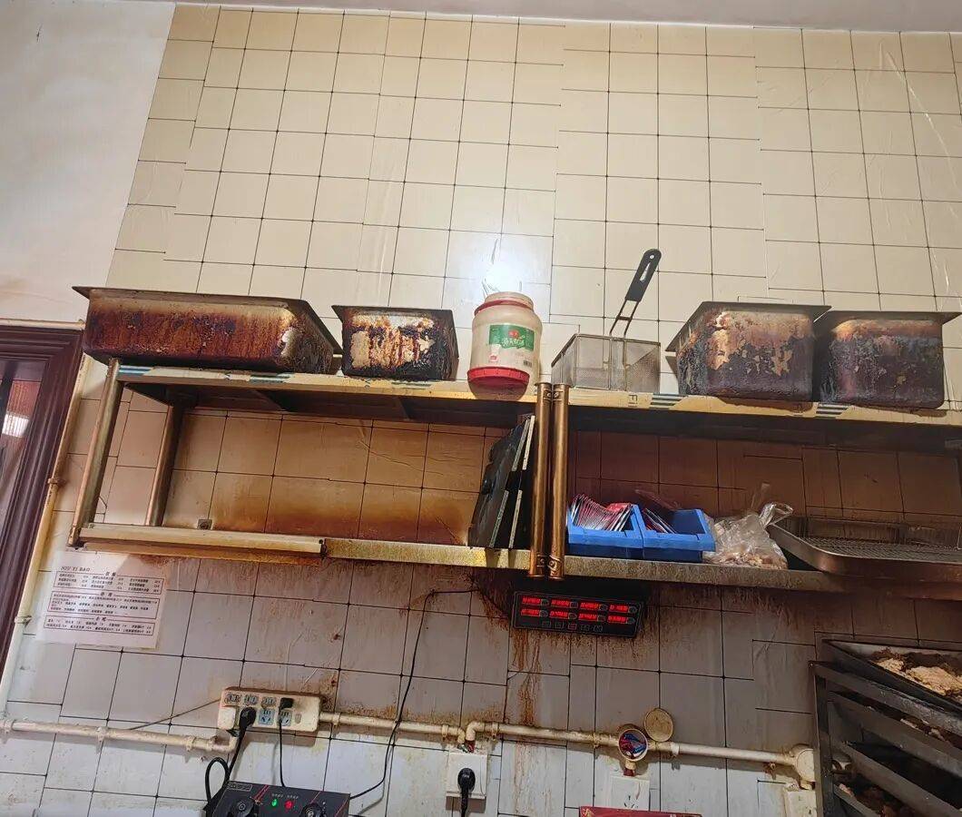 1、后厨油污重、卫生差,调料未加盖覆膜;