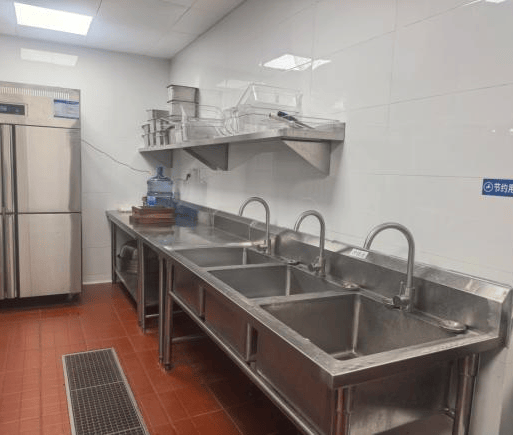 2、明厨亮灶,操作区域整洁规范,食材处理分区合理;
